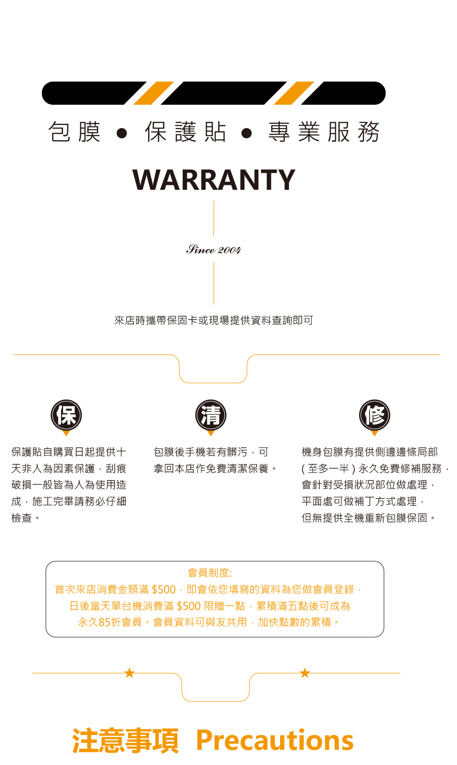 己撕除保護貼恕無法更換。獨立販售款式則不在服務範圍內,如 HTC RE